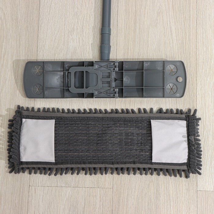 Швабра для мытья пола плоская Доляна, насадка микрофибра букли 42×12 см, телескопическая ручка 70-120 см, цвет МИКС