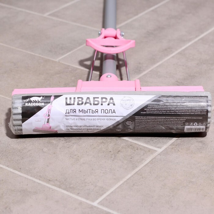 Швабра для мытья пола PVA с телескопической ручкой Raccoon, с двойным роликом, 27×78,2(120) см