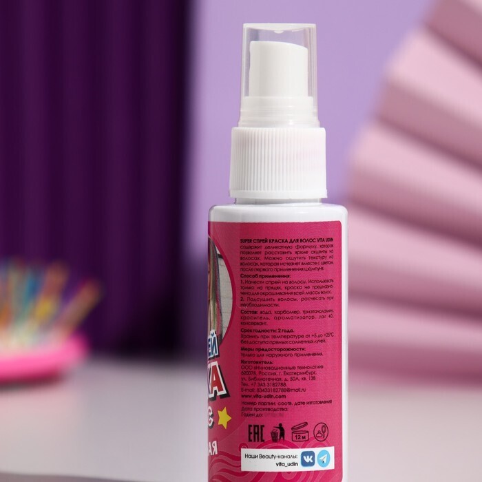 Спрей-краска содержит деликатную формулу, которая позволяет расставить яркие акценты на волосах. Можно ощутить текстуру на волосах, которая исчезнет вместе с цветом после первого применения шампуня.