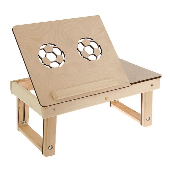 Столик-трансформер подходит для работы с ноутбуком, планшетом, а также для завтрака в постели. Предмет изготовлен из натурального дерева, имеет специальные отверстия, которые предназначены для вентиляции и предотвращения перегрева электронного устройства.
