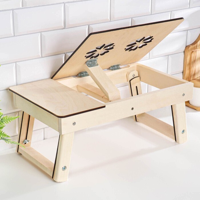 Универсальный деревянный столик можно использовать для приятного завтрака в постели или ужина перед телевизором, как подставку для ноутбука, поднос для подачи блюд и сервировки.