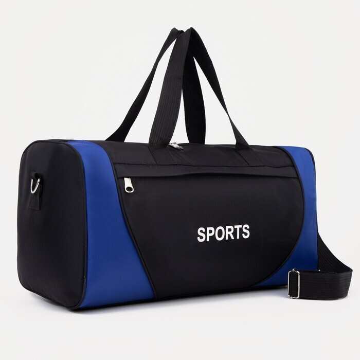 Сумка спортивная на молнии, наружный карман, цвет чёрный/синий