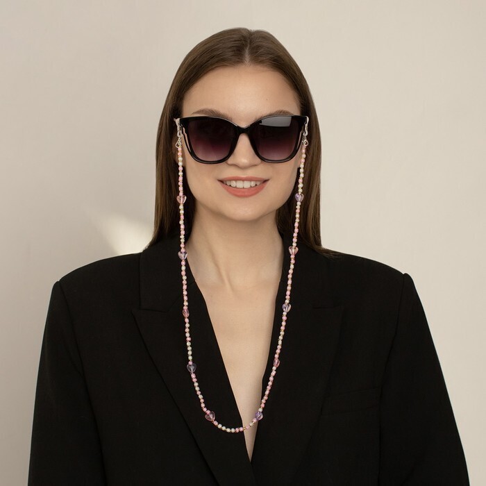 Цепочка для очков "Сердечки" объёмные, цвет розово-фиолетовый, 70 см