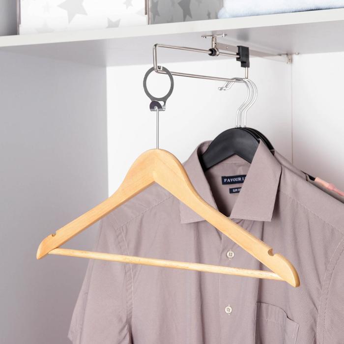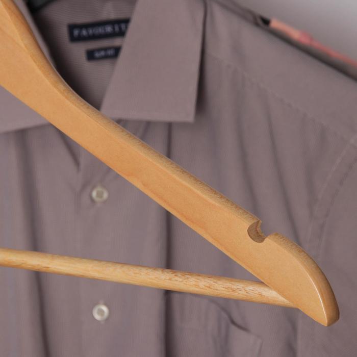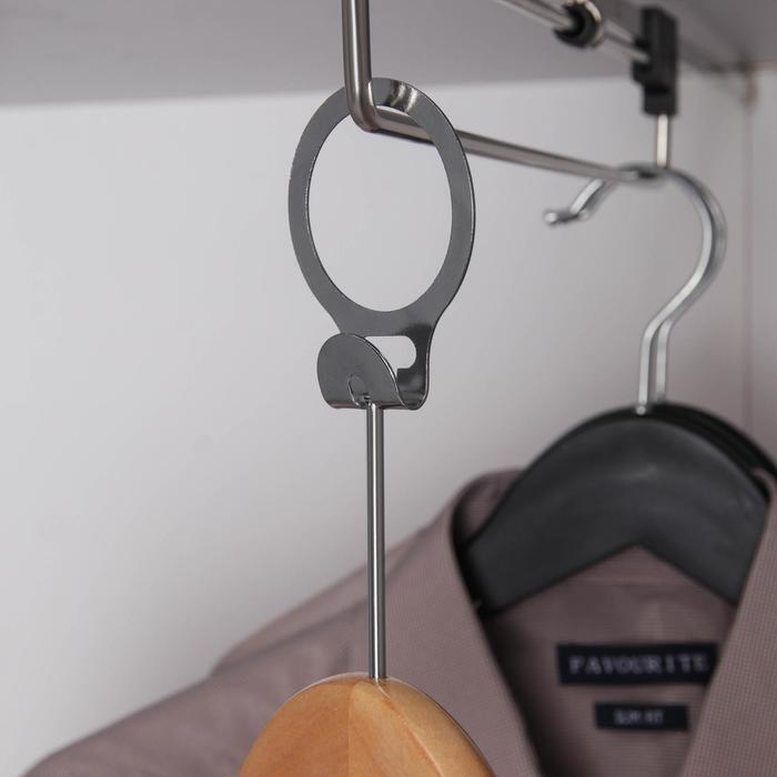 Вешалка – это компактное приспособление, которое позволит вам разместить в гардеробе классические штаны из лёгких или плотных материалов, блузки, рубашки, кофты и другие вещи. Изделие практичной формы занимает мало места, что позволяет экономить пространство в шкафу. Противоскользящее покрытие надёжно зафиксирует одежду и предотвратит её падение.