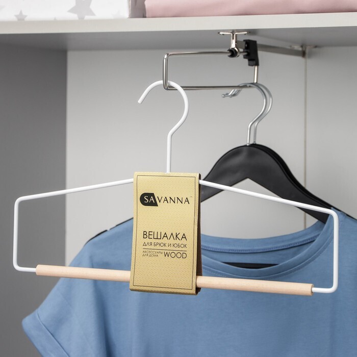 Вешалка для брюк и юбок SAVANNA Wood, 1 перекладина, 37×22×1,5 см, цвет белый