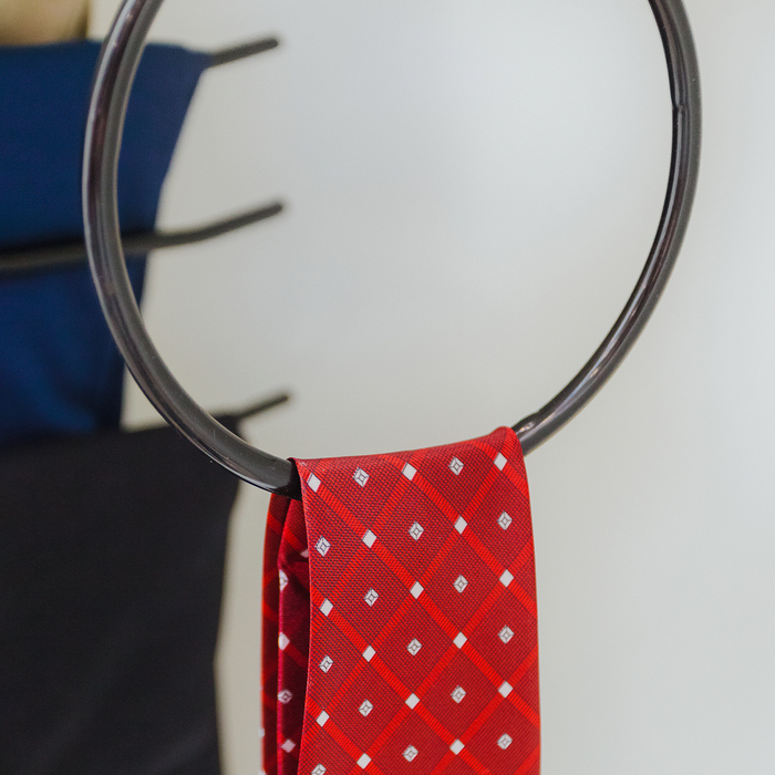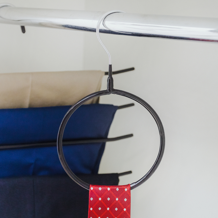 Порядок в шкафу зависит от мелких деталей. Даже если вся одежда развешена как надо, аксессуары вроде ремней, галстуков или шарфов могу создавать иллюзию хаоса. Поэтому следует использовать вешалки для аксессуаров. С их помощью вы не только наведёте порядок, но и сможете с лёгкостью находить необходимый к сегодняшнему образу аксессуар.