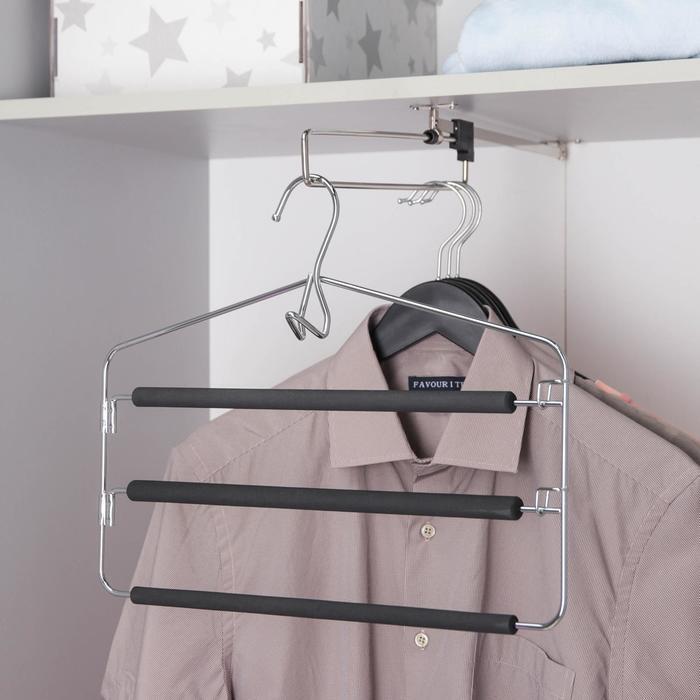 Вешалка для одежды антискользящая 3-х уровневая SAVANNA, 37×31 см, металл / полиуретан, цвет чёрный