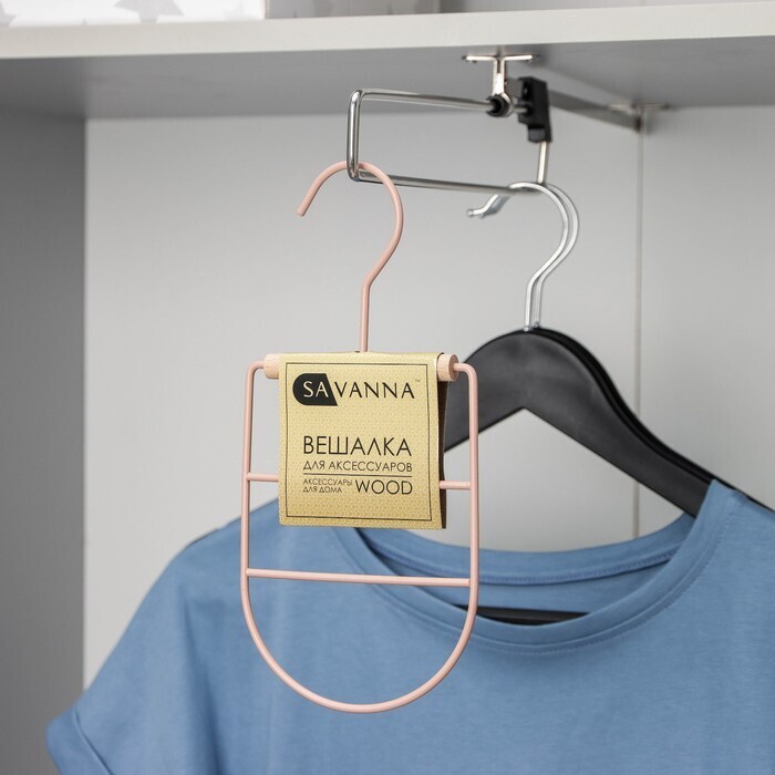 Вешалка для ремней и шарфов SAVANNA Wood, 11,3×24×1,1 см, цвет розовый