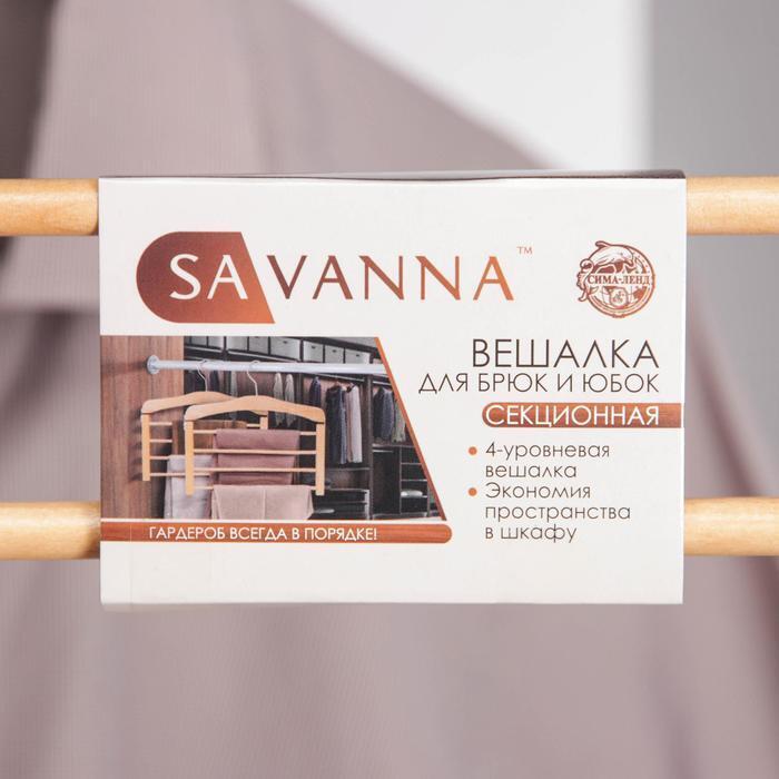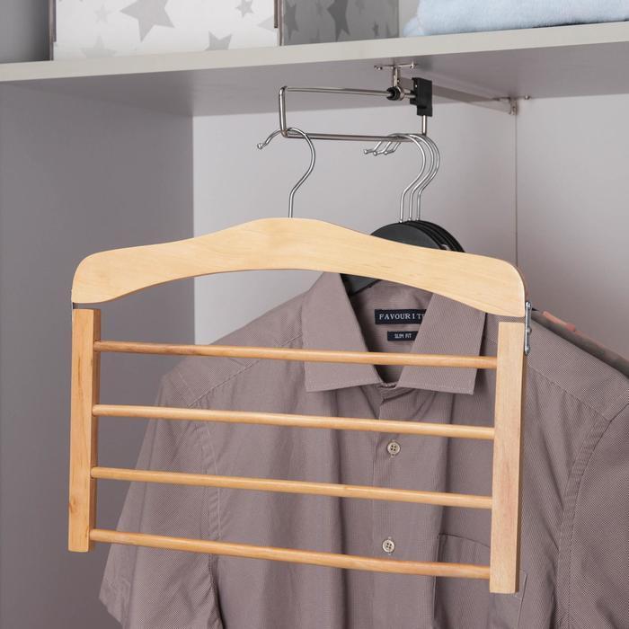 Вешалка для юбок и брюк многоуровневая SAVANNA, 4 перекладины, сорт А, 38,5×1,2×35,5 см, светлое дерево, лотос
