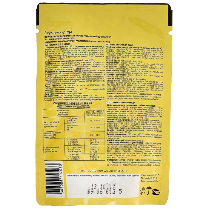 Рекомендации по кормлению: переход с предыдущего рациона следует осуществлять постепенно, небольшими порциями, в течение 5-7 дней. У кошки всегда должен быть доступ к свежей питьевой воде. При кормлении необходимо учитывать активность, возраст, размер и индивидуальные особенности Вашего питомца.